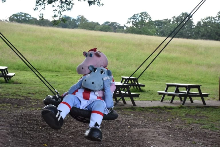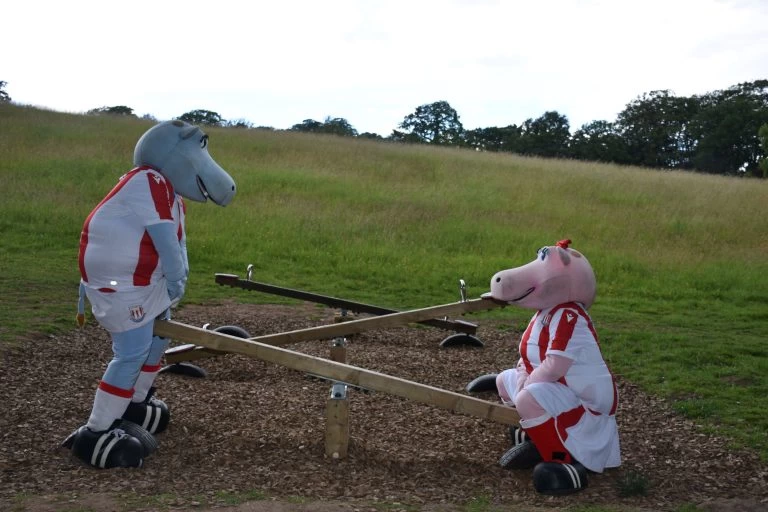The two Stoke City mascots, Pottermus & Pottermiss , visited Trentham Monkey Forest today in their first romantic outing since lockdown.